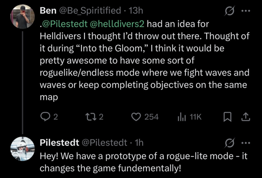 GhostlyPixel@lemmy.worldMEnglish · 1 month agoThere exists a prototype of a rogue-lite gamemode for Helldivers 2plus-squarelemmy.worldimagemessage-square4linkfedilinkarrow-up128arrow-down10