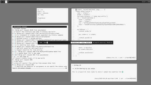 My latest setup, where I attempt to use Nix without home-manager and with rc-shell.