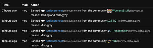 He might not have known that he would be getting banned from other subs, but as a user of several subs, I fully support admins taking steps to block people who willingly break rules of other marginalized communities. I think reasonable minds can disagree on this last point, but blahaj is pretty famous for being strict with bans even if not on the community/instance in question and the users of that instance actually really like that. I don’t know if this will be escalated, or if the ban will even stay in place, but my understanding is that people like that instance specifically because the mods there are so vigilant.
