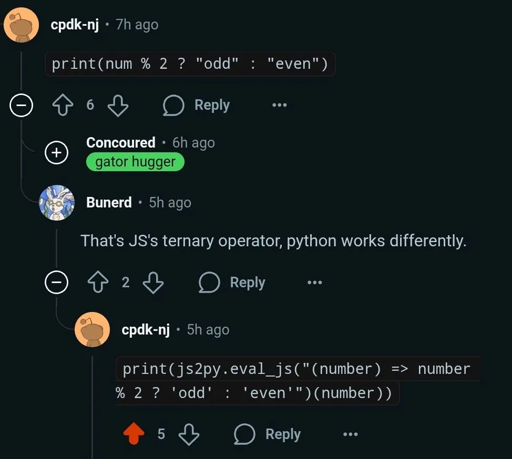 minus-squarepsud@aussie.zonelinkfedilinkEnglisharrow-up4·6 months agoLuckily I don’t need to read or write bytecode and all that matters to me is the syntax