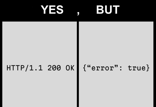 In the original image posted, that dev clearly wasn’t paying mind to the HTTP layer and as such a commenter called it just a “JSON API”, which is the catchall, ugly, Wild West, typical way of doing things (always return 200, errors are in the json).