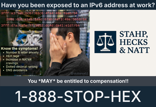 qaz@lemmy.world to Programmer Humor@programming.devEnglish · 14 days agoHave you been exposed to an IPv6 address at work?lemmy.worldimagemessage-square44linkfedilinkarrow-up1480arrow-down17