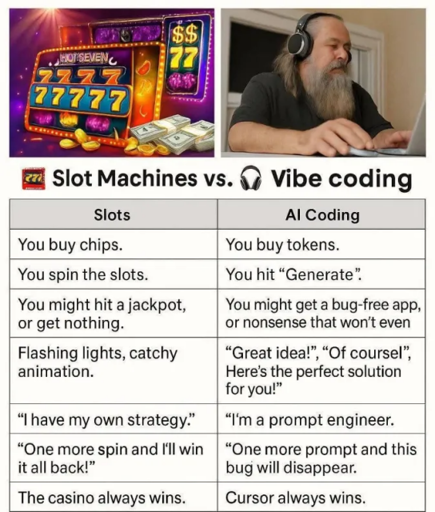 Variable rewards is a very good way to get people (and animals) addicted. Vibe coding happens to operate in that area.