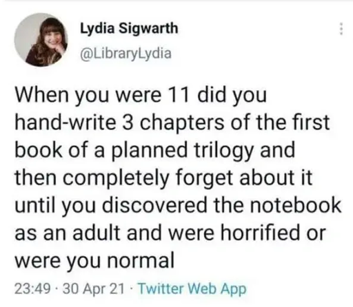 Sorry, I was too busy drafting plans and schematics to blow up my elementary school and getting caught by the principal and subsequently expelled to write my trilogy.