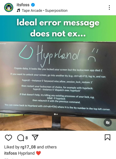 For comparison here’s the error message KDE displays in the same situation: https://www.reddit.com/r/kde/comments/15477a5/screen_locker_is_broken/