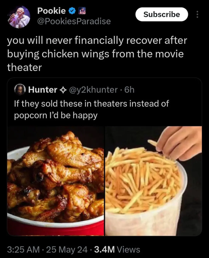 minus-squareTootSweet@lemmy.worldlinkfedilinkEnglisharrow-up5·1 month agoThat’s why I smuggle in my own chicken wings.
