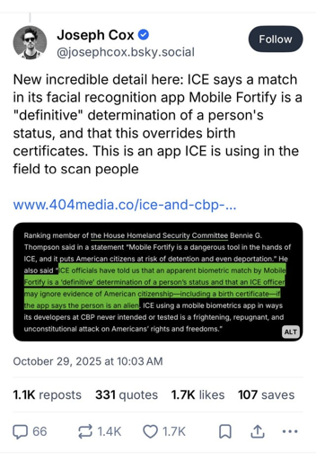 arrow-up11.02Karrow-down1imageThis is an app ICE is using in the field to scan peoplelemmy.worldSunflier@lemmy.world to People Twitter@sh.itjust.worksEnglish · edit-215 days agomessage-square151linkfedilinkfile-text