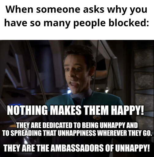 @krooklochurm@milkisklim this says nothing about blocking people who think differently, just blocking people who are perpetually unhappy & spread that unhappiness everywhere…