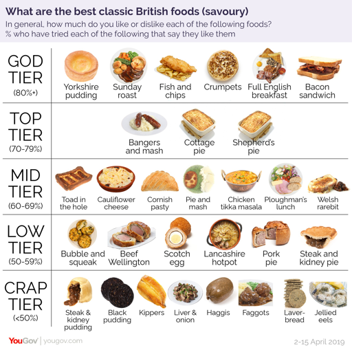 Yorkshire puddings are entirely all right but they’re not top tier. That’s like saying bread is top tier, it depends entirely on what you can buy it with. No one has just the Yorkshire pudding on a plate that’s not a meal.