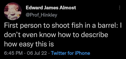 Yes, but the point is that you don’t even have to hit a fish in a barrel with a bullet, to kill it.