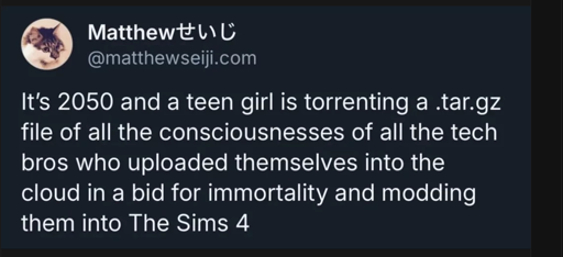 Having the ability to completely clone a person’s brain to the point where you can simulate them into environments, consciousness intact, while still not being able to extrude information from them without multiple tries of emotional manipulation is such a cool and horrifying concept