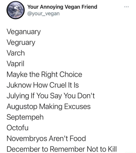nutbutter@discuss.tchncs.de to vegan@lemmy.worldEnglish · 22 days agoAre you helping someone with Veganuary this year?discuss.tchncs.deimagemessage-square11linkfedilinkarrow-up157arrow-down115