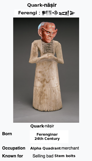 Now wait a second. I don’t think Quark ever sold shoddy merchandise. Overpriced? Sure! Stolen? Probably! Contraband? Absolutely! But low quality merchandise doesn’t breed customer loyalty. It doesn’t generate repeat business.