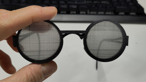 But here’s the thing: they’re FULLY 3D-printed. The “lenses” are in fact the finest and thinnest mesh I could print with our printer - basically one 0.1mm layer of 0.4mm lines spaced 0.4mm running horizontally, and an identical layer of lines running vertically right on top of it.