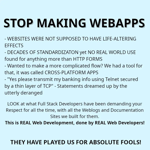 arrow-up125arrow-down1external-linkDuring Helene, I Just Wanted a Plain Text Websiteplus-squaresparkbox.comcm0002@ttrpg.network to Web Development@programming.dev · 20 days agomessage-square5linkfedilink