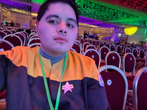 Garrett also loved my EHK; asked for a photo of me and a video explaining it. So all I did was dress up in the early 2370s uniform, wear an ensign pip and slap a mobile emitter (Fansets released a new mobile emitter at STLV which was super popular). Emergency Harry Kim: activate when you need an ensign to disappoint. Ironically the Starfleet Academy trailer had been released two weeks earlier.